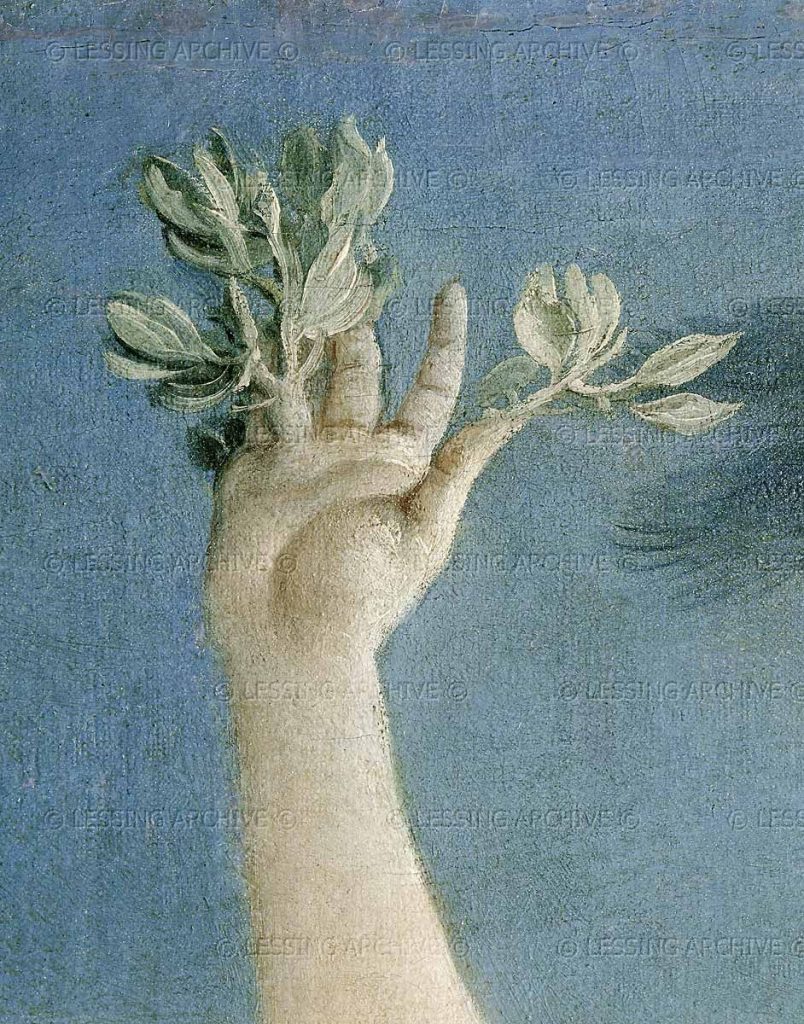 Tanrıların başını döndüren su perisi Daphne, Defne Ağacı olmuştur. Yanı başında, dizleri üstünde göz yaşı döken Tanrının kederine dayanamaz ve yalnız nefesi duyulmayanların taşıyabileceği bir vicdanla başını ona doğru eğer, yapraklarıyla güneşin sırtını sıvazlar.